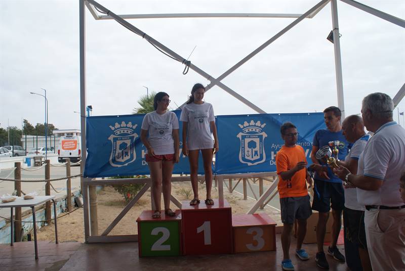 Con respecto a la travesía mini: las tres primeras plazas femeninas fueron para: Amelia Fernández y Guadalupe Buendía, ambas pertenecientes al C. N. Huelva, mientras que la tercera plaza la obtuvo Victoria Garrido del ADUS universitario. En la categoría masculina el pódium lo compusieron: Juan Pedro Vázquez y Rubén Camacho los dos del C.N. Huelva y en tercera posición Alejandro Noci del C.D. Nudión.